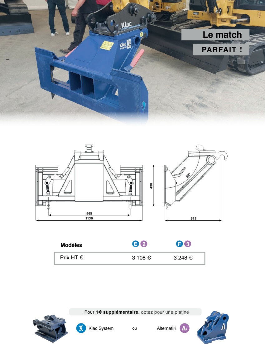 Cet équipement est conçu pour permettre à l'utilisateur de minipelle de monter l'ensemble de ses accessoires SKID sur sa machine.
