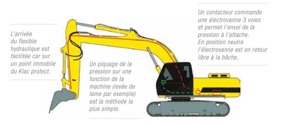 Le Klac système hydraulique nécessite 200 à 250 bars pour un bon fonctionnement.