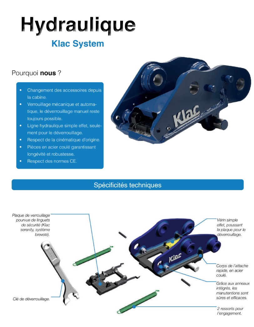 Klac système hydraulique dispose des mêmes systèmes d'engagement (les ressorts) et de verrouillage (les linguets) que la version mécanique.