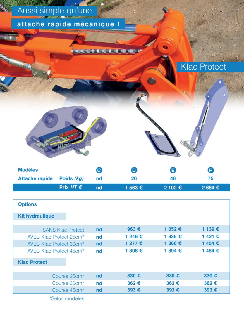 Les joints du vérin et le flexible du Klac protector peuvent fonctionner jusqu'à des pressions de 350 bars maxi , il n'est donc pas utile d'installer un limiteur de pression autre que celui de la machine.