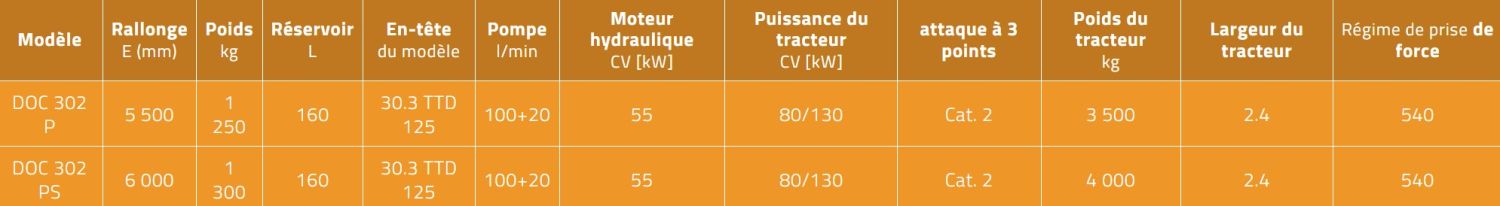 DOC 302P – 302PS - 5,5 m / 6,0 m - Pour tracteurs de 80 à 130 ch