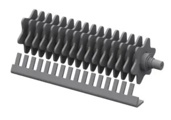 La sélection s'effectue à travers un écran hydraulique à couteaux rotatifs en acier haute résistance HB400.