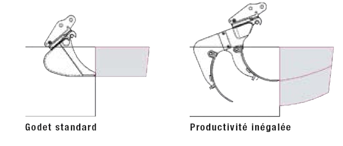 - Capacité quasi double de celle d'un godet standard de même largeur