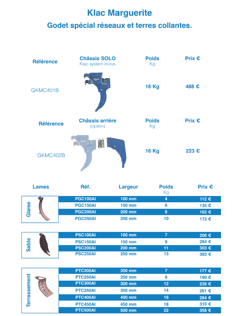 Godet Klac Marguerite Solo pour pelle de 0,8 à 2T