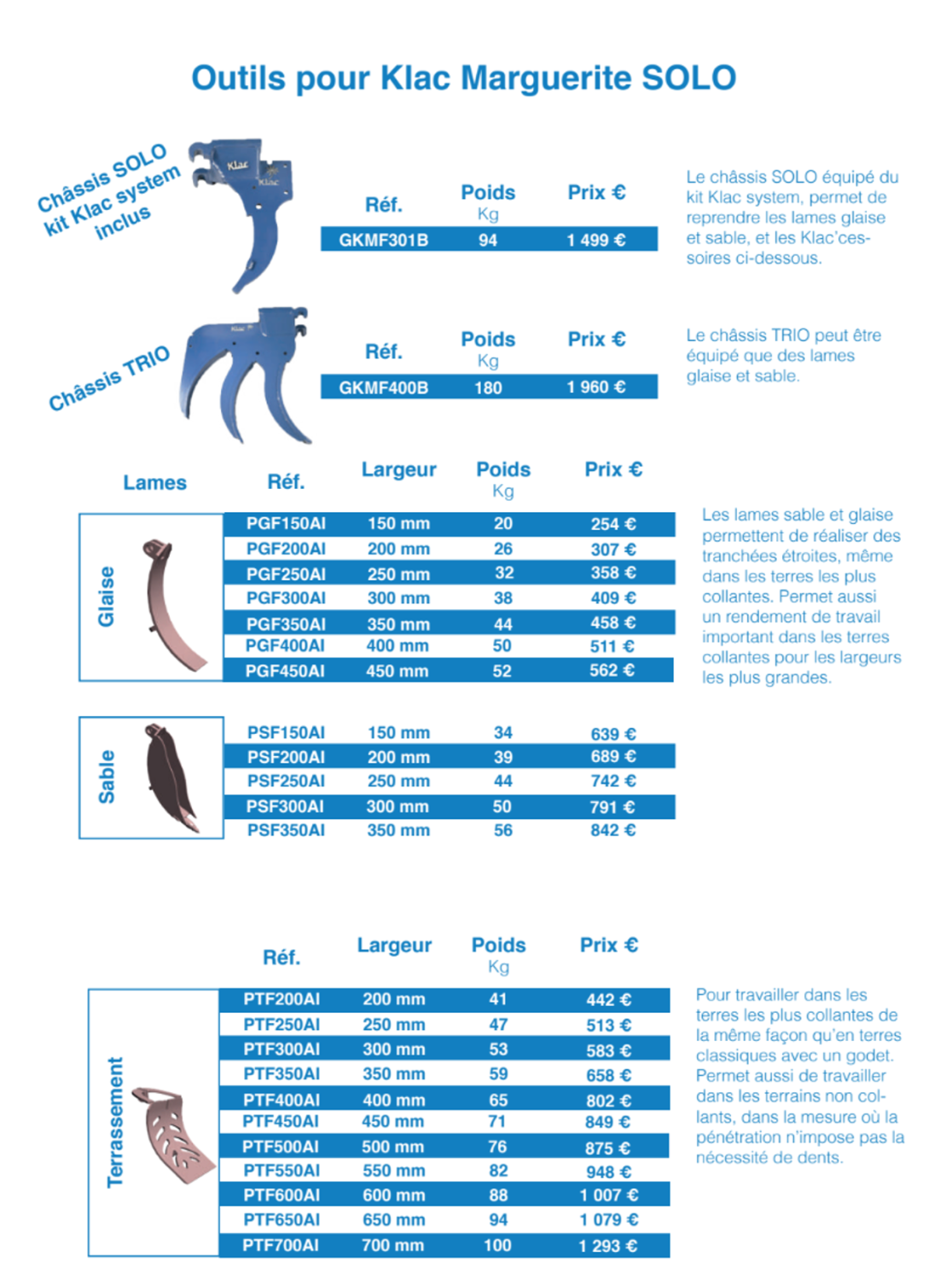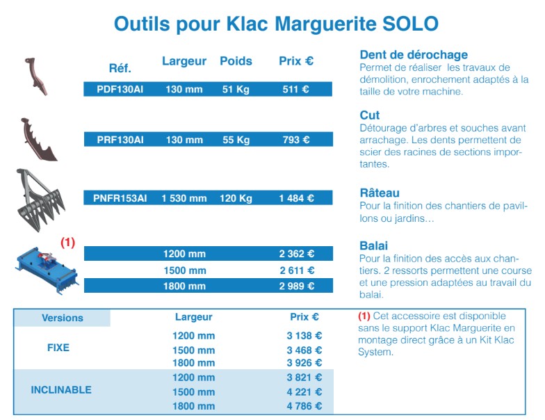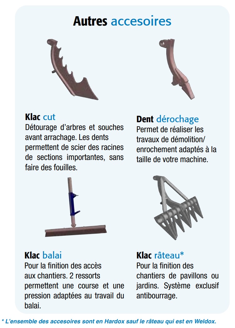La mini pelle a beaucoup fait sur les chantiers depuis 20 ans pour mécaniser certaines tâches et les rendre moins pénibles. L’idéal serait bien sûr de rendre votre balancier aussi agile qu’une main ! Pour saisir, par exemple, une pelle, un râteau, une bêche, un balai, … c’est très exactement ce que vous propose Klac marguerite, un véritable porte-outil !