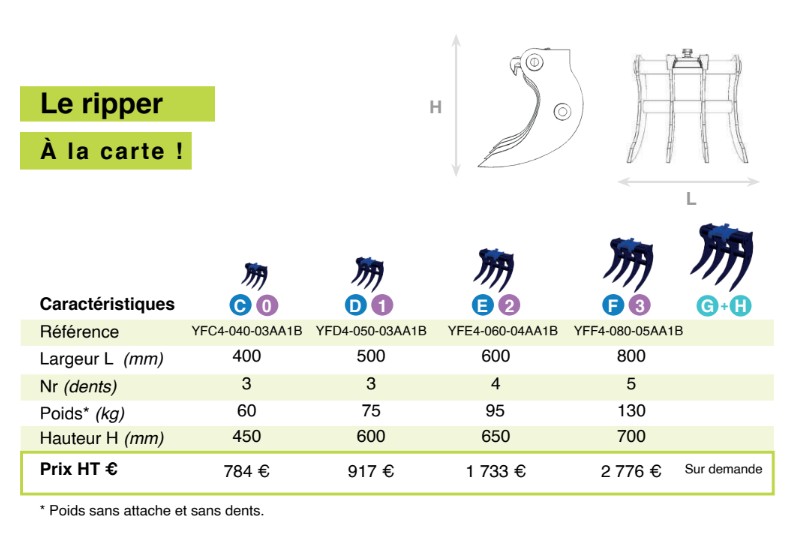 Nous construisons le FLEKO dont vous avez besoin : vous pouvez choisir la largeur, le nombre des rippers, s’ils sont pourvus de dents ou pas…