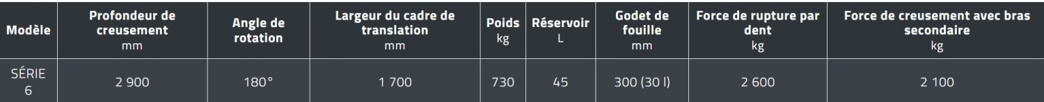 - Système indépendant avec pompe de 16 cm³/tour, multiplicateur, réservoir intégré d'une capacité de 45 litres, filtre à huile et huile hydraulique.