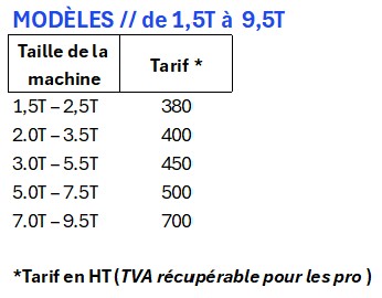- Disponible pour toutes les machines de 0,75 T à 50 tonnes (au delà de 9,5T sur demande)