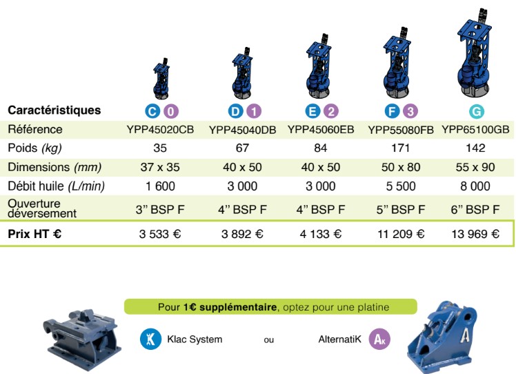 Elles exploitent la grande puissance hydraulique des machines, les transformant en pompes hautement efficaces. Leur incroyable puissance les rend idéales pour toutes les opérations de pompage de grands volumes d’eau.